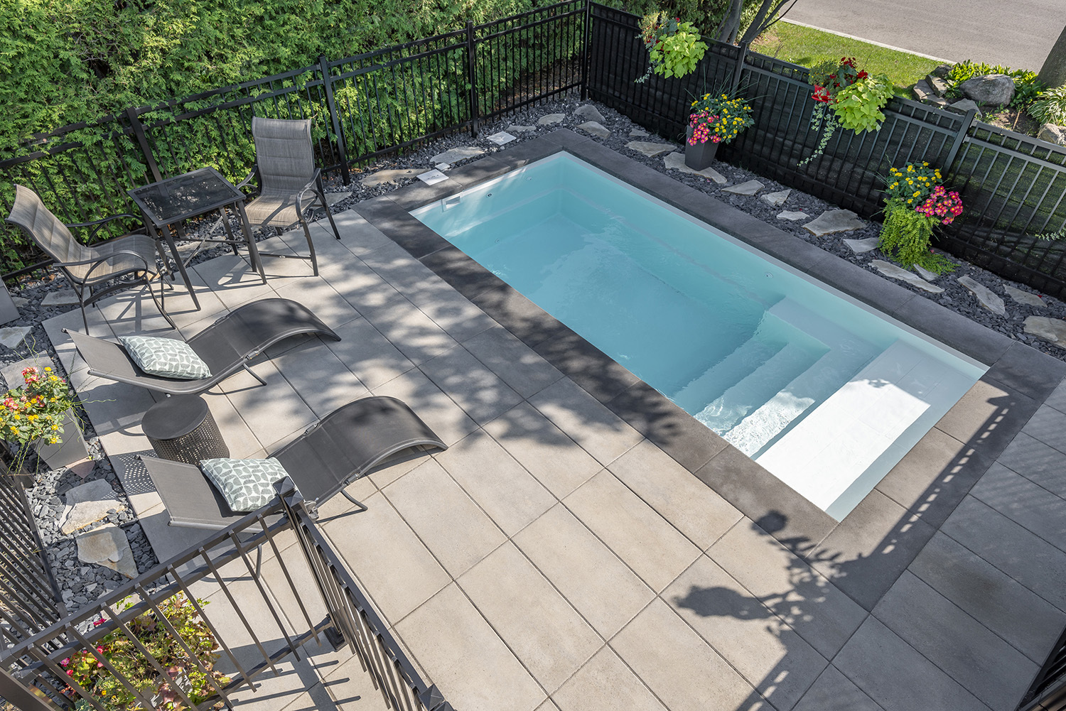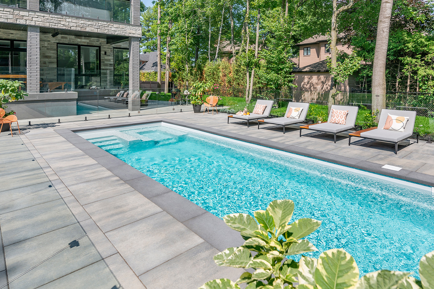 Azoria pools are specifically designed to match Rinox' coping collection. Moreover, these slabs can be installed at the same time as your pool installation. Consult the Rinox Landscaping Lookbook.