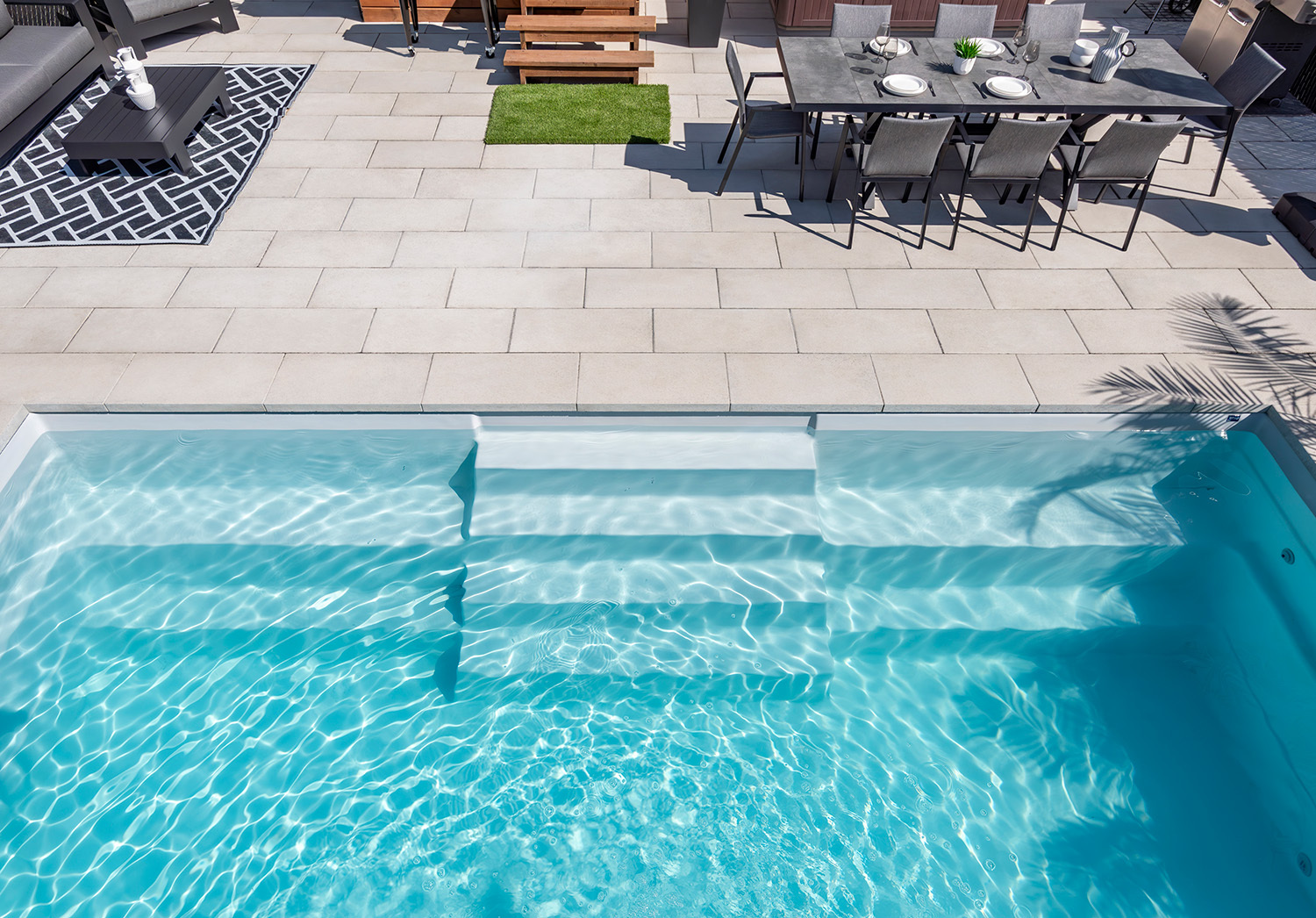 - Sun exposure and use patterns: Direct sunlight slowly fades any outdoor surface. Consistent care, cleaning, and using proper pool products limit unnecessary wear.