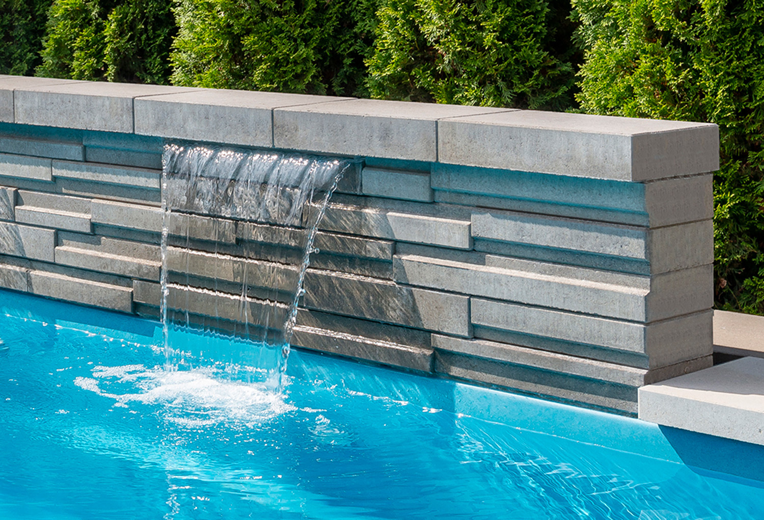 Some concrete copings can be used as a design detail integrated in a retaining wall. Building a retaining wall by your pool is a trendy alternative to make your backyard more unique. For a relaxing ambiance, build a waterfall into your retaining wall as seen in the inspiration photo below.